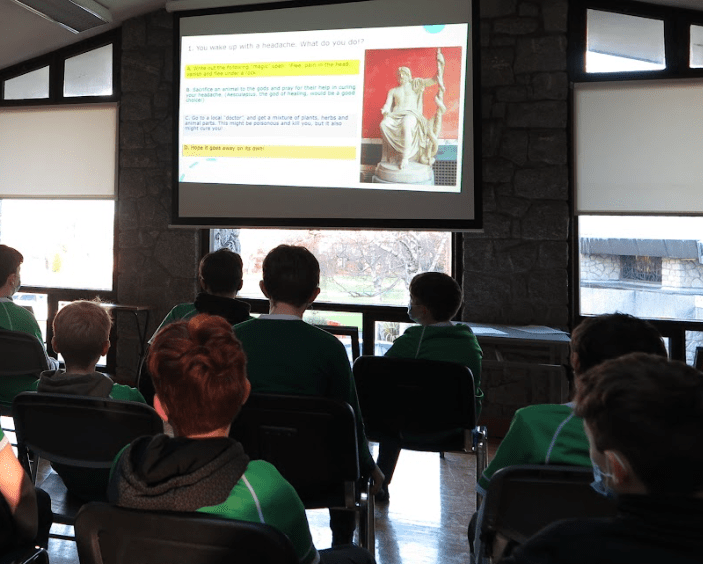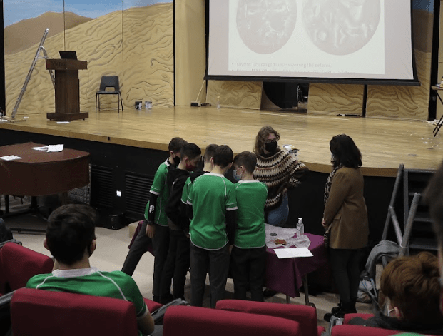 School visits remain at the heart of Access Classics. Although the scourge of Covid-19 limited the possibility of face-to-face visits at the beginning of the school year, the tide began to turn as we approached Christmas, when, not only did we have the opportunity to visit schools again, but we were even accompanied by some of the UCD students on our Access Classics module (more on this later!). Our largest visit coming up to Christmas was to Gonzaga College SJ, where, with the invaluable support of the teachers, we were able to run four simultaneous activities, meeting all first-year students in one morning!