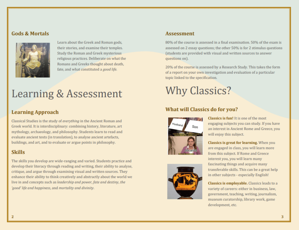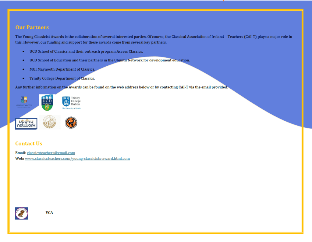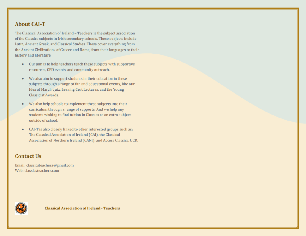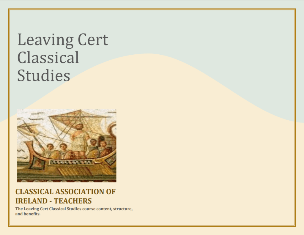 Good news! The Classical Association of Ireland Teachers has produced an informative brochure setting out all the essential information about the new Senior Cycle Classical Studies curriculum. If your school already teaches Classical Studies or is thinking of introducing it, this is essential reading!